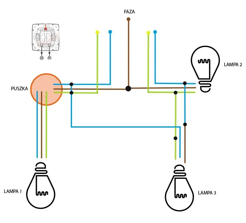 Innym popularnym rozwiązaniem jest konfiguracja równoległa, w której każde urządzenie jest podłączone osobno do źródła zasilania. Dzięki temu awaria jednego z urządzeń nie wpływa na działanie pozostałych. Warto również wspomnieć o bardziej zaawansowanych konfiguracjach, takich jak systemy zdalnego sterowania, które umożliwiają zarządzanie oświetleniem i innymi urządzeniami elektrycznymi zdalnie. Zrozumienie tych różnych schematów pozwala na lepsze dostosowanie instalacji do indywidualnych potrzeb użytkownika.